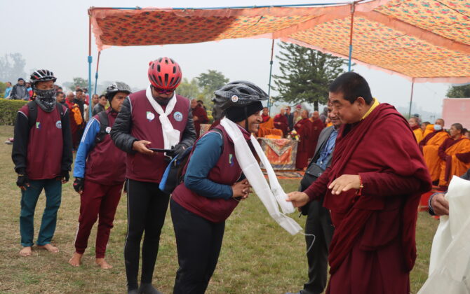 पुरा पढ्नुहोसलुम्बिनी । ‘बुद्ध ज्ञान साइकल यात्रा’का यात्रीहरुलाई संविधानसभा सदस्य तथा लुम्बिनी विकास कोषका उपाध्यक्ष प्रथम योल्मो खेन्पो (छिमे छिरिङ) डा. ल्हारक्याल लामाले लुम्बिनी मायादेवी मन्दिर अगाडि खादा लगाएर स्वागत एवं सम्मान गरेका छन् । साइकल...