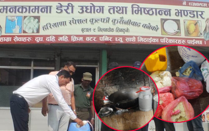 बुटवलको मनकामना डेरीमा उपभोक्ताको स्वास्थ्यमाथि गम्भीर खेलवाड, अखाद्य वस्तु मिसाएर विक्री