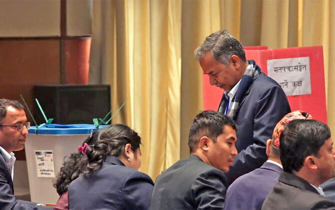 ३ चैत, काठमाडौं । उपराष्ट्रपति पदका लागि मतदान सुरु भएको छ । नयाँ बानेश्वरको संसद भवनस्थित ल्होत्से हलमा मतदान सुरु भएको हो । बिहान १० बजेबाट सुरु भएको मतदान दिउँसो ३ बजेसम्म चल्नेछ । उपराष्ट्रपतिमा...