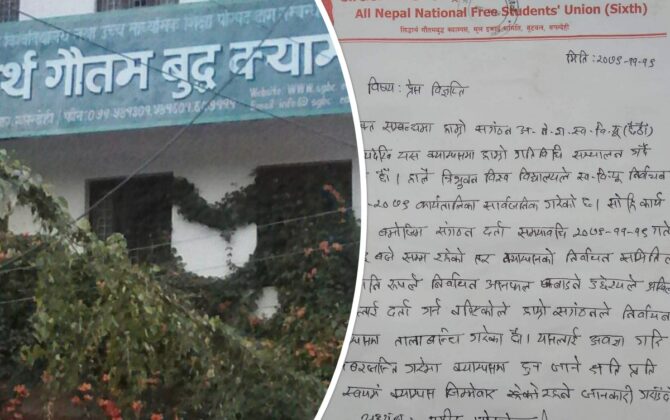 पुरा पढ्नुहोसअखिल नेपाल राष्ट्रिय स्वतन्त्र विद्यार्थी युनियन छैठौंले बुटवलको सिद्वार्थ क्याम्पसमा तालावन्दी गरेको छ। टियुको निर्देशन विपरित बुटवलको सिद्धार्थ क्याम्पसले अखिल छैठौंलाई संगठन दर्ता गर्न नदिएपछि इकाई समितिले निर्वाचन आयोगमा तालाबन्दी गरेको हो। आगमी चैत्र ५...