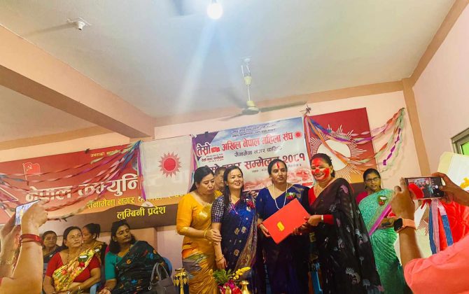 पुरा पढ्नुहोसअखिल नेपाल महिला संघ सैनामैनाको तेस्रो नगर अधिबेशन सम्पन्न भएको छ । अधिबेशनले बसन्ता रेग्मी छेत्री को अध्यक्षतामा ३३ सदस्यिय नगर कार्य समिति चयन गरेको छ । जसको उपाध्यक्षमा लिला सपकोटा सचिवमा सीता भुसाल...