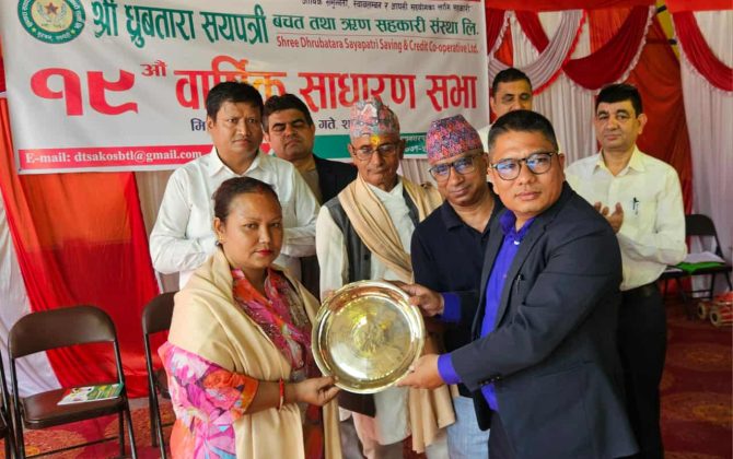 पुरा पढ्नुहोसबुटवल, ४ असोज । ध्रुबतारा सयपत्री बचत तथा ऋण सहकारी संस्था लिमिटेड बुटवलको १९ औं वार्षिक साधारणसभा शनिबार एक कार्यक्रमका बीच सम्पन्न भएको छ । सहकारीका अध्यक्ष मान बहादुर कुँवरको अध्यक्षतामा भएको कार्यक्रममा सहकारीका...