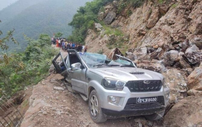 पाल्पामा गुडिरहेको जिपमाथि पहिरो खस्दा ३ जनाको मृत्यु