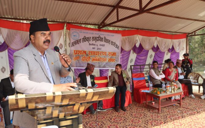पुरा पढ्नुहोससैनामैना, ७ फागनु । सैनामैना नगरपालिका ६ मा रहेको मलमला एकीकृत सामुदायिक विकास कार्यक्रमको प्रथम साधारण सभा तथा दोश्रो अधिवेशन आईतवार सम्पन्न भएको छ । साधारण सभाको उदघाटन गर्दै रुपन्देही क्षेत्र नं. ५ का संघीय...