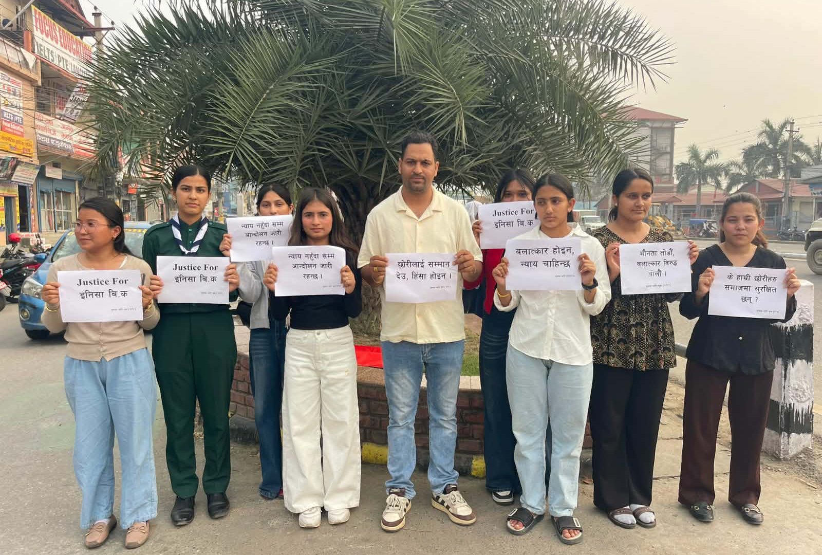 •   युवाका लागि युवा ( वाइ.एफ.वाई) को आयोजनामा हातमा विभिन्न व्यानरसहित मणिग्राम चोकमा युवाहरुले विरोध धर्ना गरेका छन ।कुनै नारीले लैङ्गिक आधारमा बलात्कार र हत्याहिंसाको सिकार हुन नपरोस र नहुन भनेर धर्ना कार्यक्रम आयोजना गरिएको युवाका लागी युवा संयोजक जीवन पाण्डेले जानकारी दिए। के हाम्री छोरिहरु समाजमा सुरक्षित छन ? हिसा...